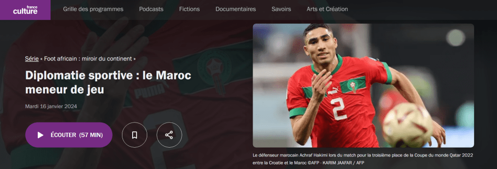 Der Radiosender „France Culture“ hat am 16. Januar einen Podcast mit dem Thema „Sportdiplomatie: Marokko als Spielmacher“ veröffentlicht.
