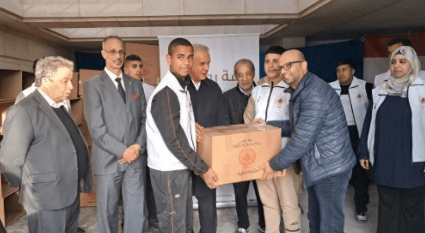 An dieser Solidaritätsaktion nahmen Mohamed Salem Cherkaoui, Direktor der Bayt Mal Al-Qods Acharif-Agentur, Mohamed Jamal Bouzidi, Präsident der marokkanischen Vereinigung zur Unterstützung des Wiederaufbaus in Palästina, sowie religiöse und soziale Persönlichkeiten aus Maqdis und Vertreter der begünstigten Einrichtungen teil.