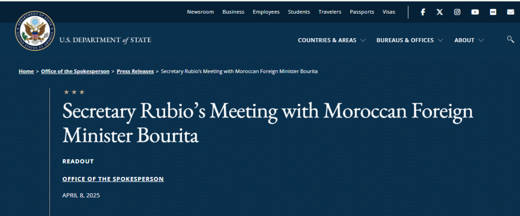 Diese Position wurde bei einem Treffen zwischen dem marokkanischen Außenminister Nasser Bourita und dem amerikanischen Außenminister Marco Rubio am Dienstag, dem 8. April 2025, in Washington zum Ausdruck gebracht.