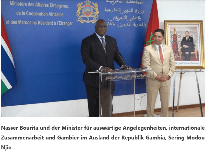 Diese Position wurde in einer gemeinsamen Erklärung bekräftigt, die am Mittwoch, dem 23. Juli, in Rabat nach Gesprächen zwischen Nasser Bourita, Minister für auswärtige Angelegenheiten, afrikanische Zusammenarbeit und Marokkaner im Ausland, und Sering Modou Njie, Minister für auswärtige Angelegenheiten, internationale Zusammenarbeit und Gambier im Ausland, veröffentlicht wurde.